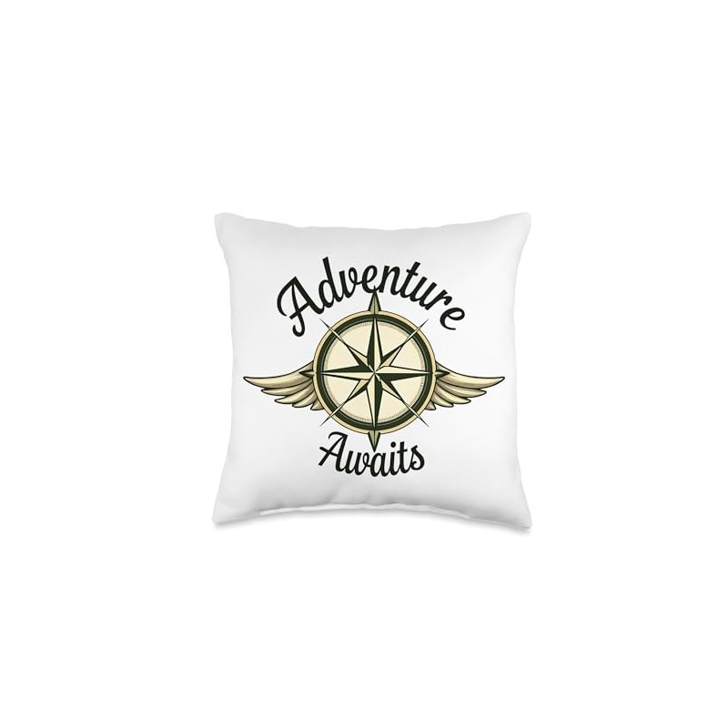 Adventure Awaits Compass Explore More Nature Hiking Camping Throw Pillow