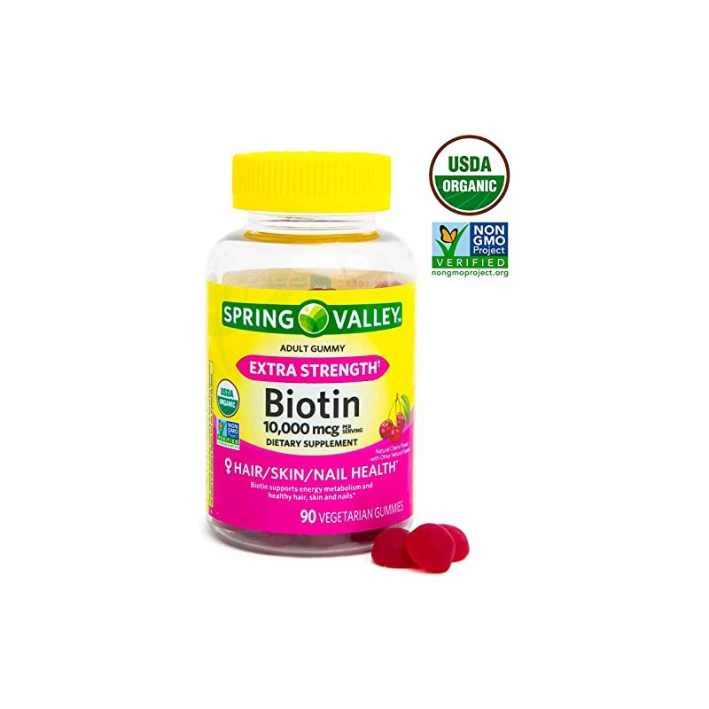 Spring Valley Biotin Vegetarian Gummies are the simplest, best-tasting way to support energy metabolism. Our delicious and easy to chew gummies make taking your daily Biotin supplement a joy. Spring Valley understands living a healthy, balanced lifestyle is the key to being your best self. With a commitment to using only the highest quality ingredients, Spring Valley gummies are a simple and delicious addition to your daily routine that you can feel good about. Our affordable range of high-quality products supports you and your family's health and holistic wellbeing. Organic and Non-GMO, Spring Valley Biotin Vegetarian Gummies have been specifically formulated to support energy metabolism. These gummies are packed full of good stuff