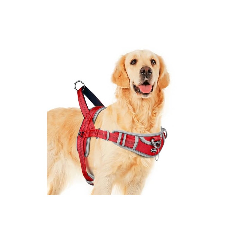 ADVENTUREMORE Dog Harness for Large Dogs No Pull, Sport Dog Halter Harness Reflective Breathable Dog Vest Escape Proof Dog Harness with Easy Control Front Clip Handle for Training Walking XXL Red