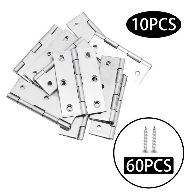 - 【Packaging & Size】:You will receive 10pcs 3.5 inch stainless steel flat hinges and 60pcs M4.8*30 mounting screws. Each measuring 88*55*7.2mm(3.46x2.17x0.28inch).