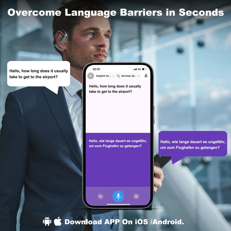 - Versatile Use for Every Occasion: Whether you're traveling, in a business meeting, or need a personal assistant, these translator earbuds adapt to your needs. Easily switch between different translation modes to enhance your communication efficiency across various scenarios, including international travel, negotiations, and casual conversations.