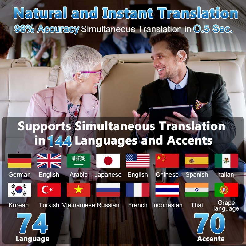- Real-time, High-Accuracy Translation in 144 Languages: Experience seamless communication with real-time, two-way translation in 144 languages. Powered by advanced machine learning, our earbuds continuously improve translation accuracy based on your preferences, ensuring precise translations in any situation.