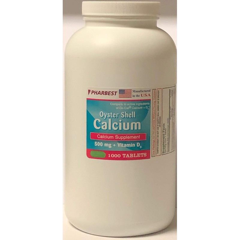 Oyster Shell Calcium 500 mg + Vitamin D Supplement - 1,000 Tablets