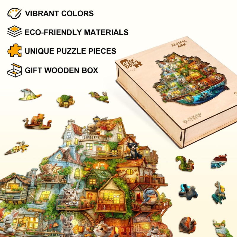 AEEKDOOK Wooden Puzzles for Adults - 100 Pieces Animal Ark Wooden Puzzle - Unique Shapes Wooden Jigsaw Puzzles for Adults - Eco-Friendly Home Office Decor (S-8.5 * 7.8in)