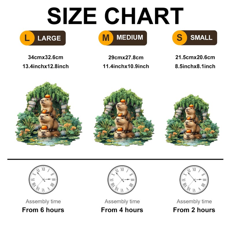 Aeekdook Wooden Puzzles for Adults - 300 Pieces Capybara Wooden Puzzle - Unique Animal Shape Wood Cut Puzzles - Eco-Friendly Home Office Decor (L - 13.4 * 12.8in)