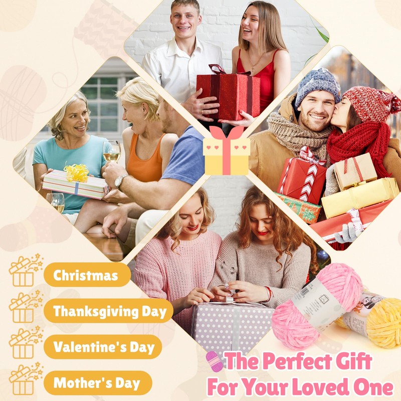 - EXCLUSIVE CRAFTS Our chenille yarn is perfect for knitting, crocheting and all creative projects. The thickness of the yarn is uniform and easy to work with, making it suitable for crafters of all skill levels. Perfect for making plush baby blankets, dolls, scarves, scarves and other items. With this delightful yarn, your creativity knows no limits and the possibilities for your projects are endless