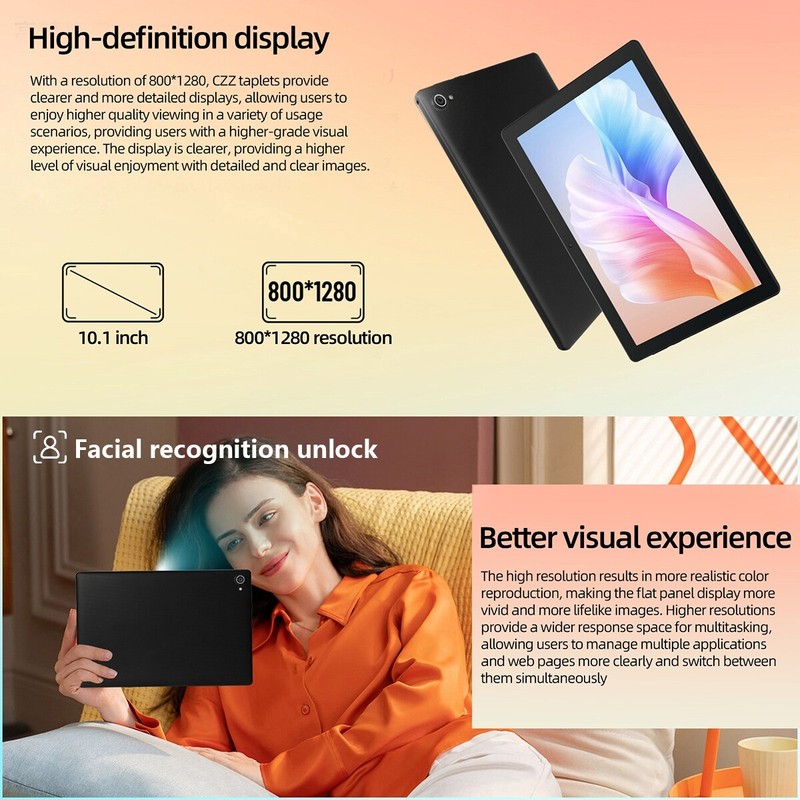 - ⭐【Fast Connection & Smoother Sensitive Experience】The android tablet is equipped with a powerful A55 architecture and an Octa-core CPU, delivering a smooth and fast performance and convenient operations. Whether you're watching videos, browsing the web, or listening to music, you'll enjoy a seamless and uninterrupted experience. This 10" tablet effortlessly handles multitasking and demanding applications