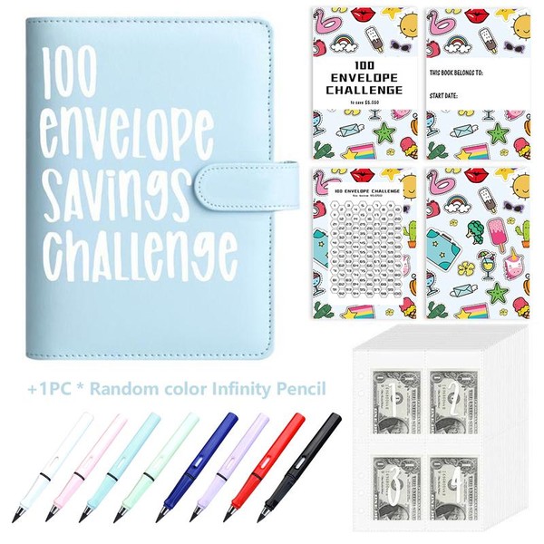 „ÄêFaddish„Äë100 envelope savings books + unlimited writing pencils for easy and fun savings of $5,050, perfect for budget planners:_100-Days Blue