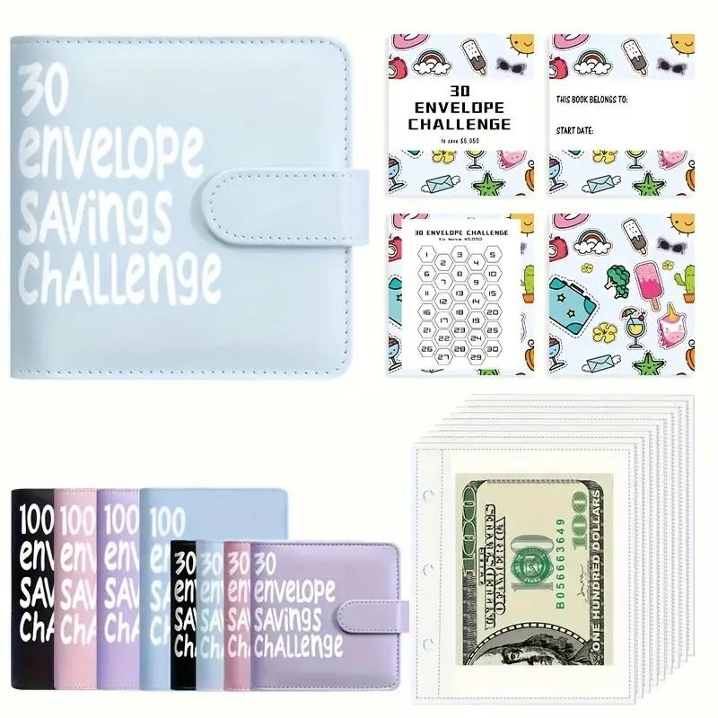 „ÄêFaddish„Äë100 envelope savings books + unlimited writing pencils for easy and fun savings of $5,050, perfect for budget planners:_30-Days Purple