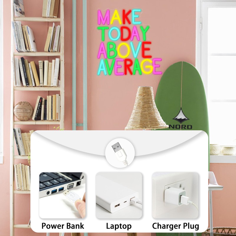 AEHEMNGZ Make Today Above Average Neon Sign USB Positive Aspiring Neon Light for Wall Decor Led Motivational Neon Sign for Classroom Office Library Home Wall Decor(12.5 * 12.2 In)