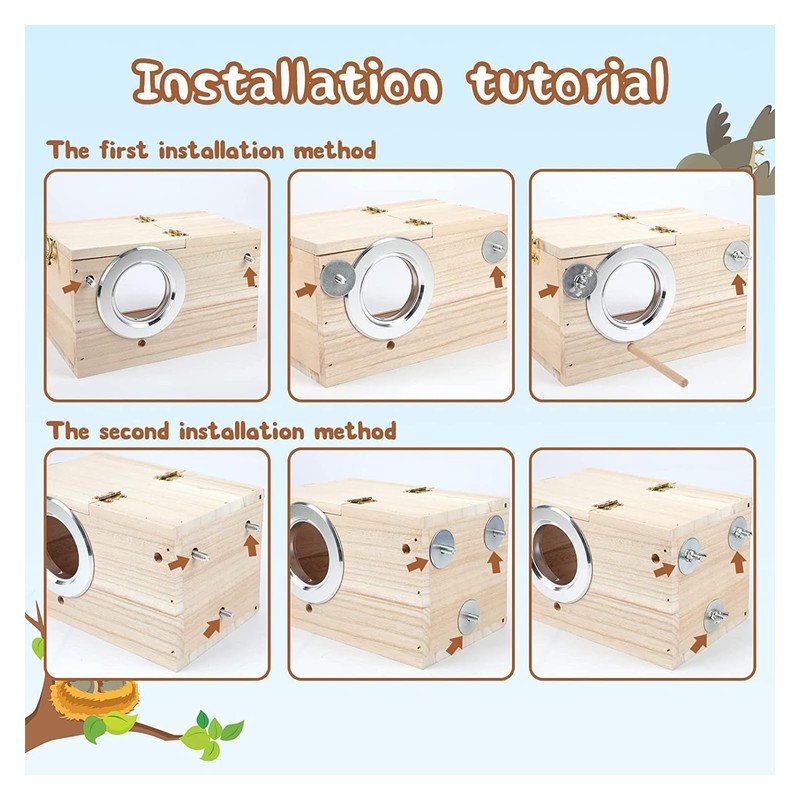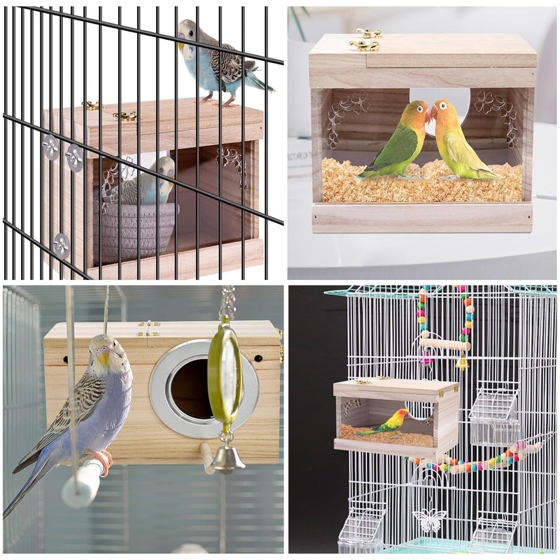 - Material - Our parakeet nesting box is made of solid premium paulownia, flat and seamless surface, with the flavor of natural forest, your parakeet will enjoy these comfortable and relaxing home. Light weight but durable that can last for long time.