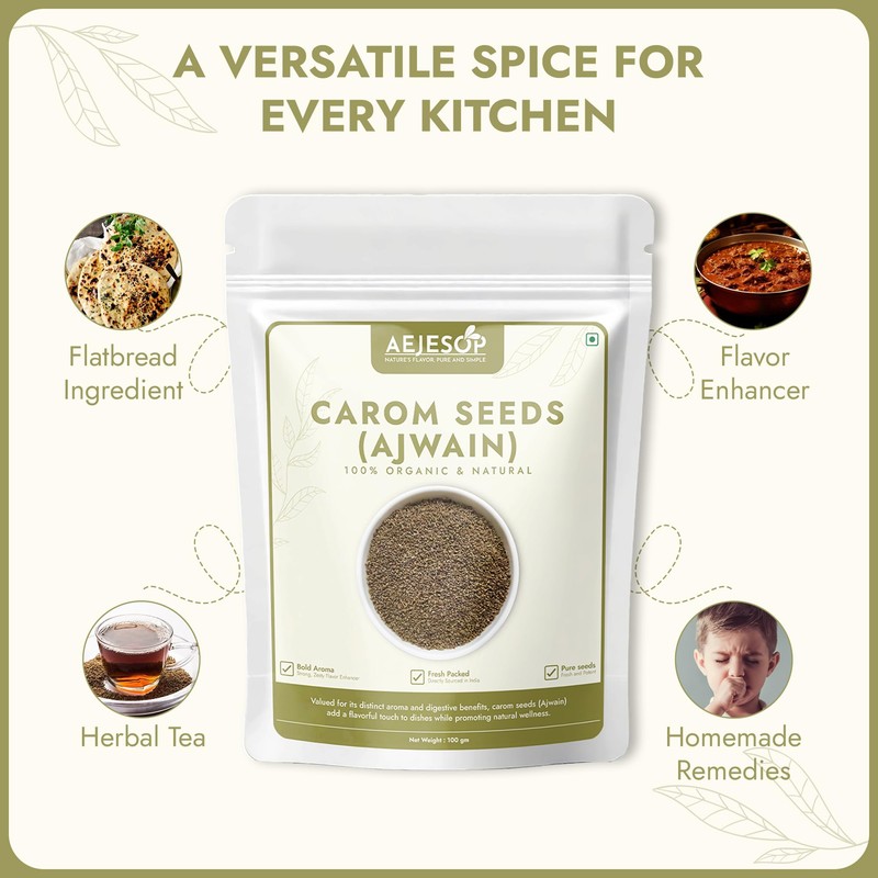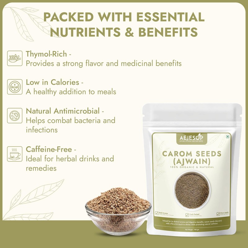 - Carom seeds natural are not only popular for their distinct taste but also popular for their health benefits in daily routine. It is rich in fiber, vitamins, and antioxidants that are good for both hair and skin. Add it to teas and drinks to reap its benefits for a wide range of issues you might face in daily life.
