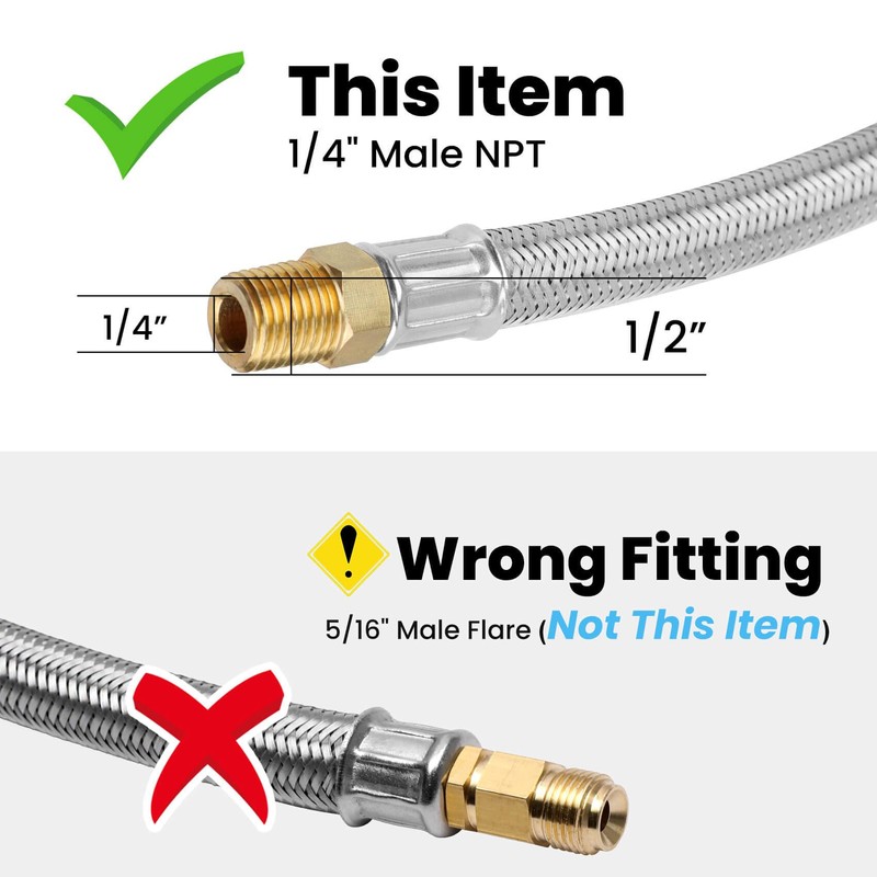 - Material de calidad: esta manguera de propano RV de 1/4 NPT está hecha de trenza de acero inoxidable, lo que reduce eficazmente la fricción y los daños causados por los animales. Más duradero que el material de goma
