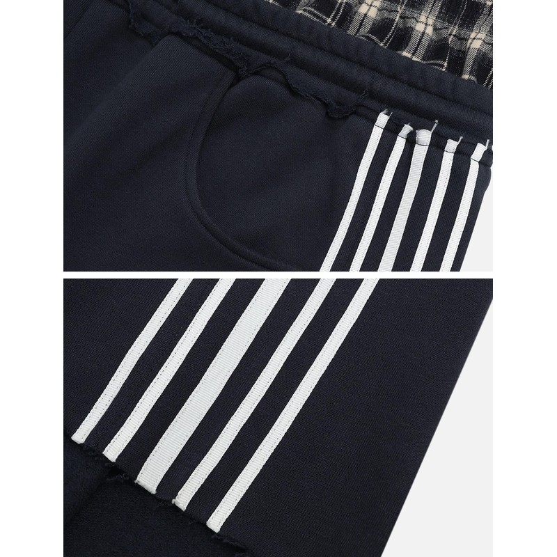 The standout feature of these sweatpants is the plaid patchwork design, which adds a nostalgic yet chic element to the overall aesthetic. Channeling a retro vibe, the plaid detailing offers a unique contrast against the solid color of the pants, giving them a playful and eye-catching appeal.