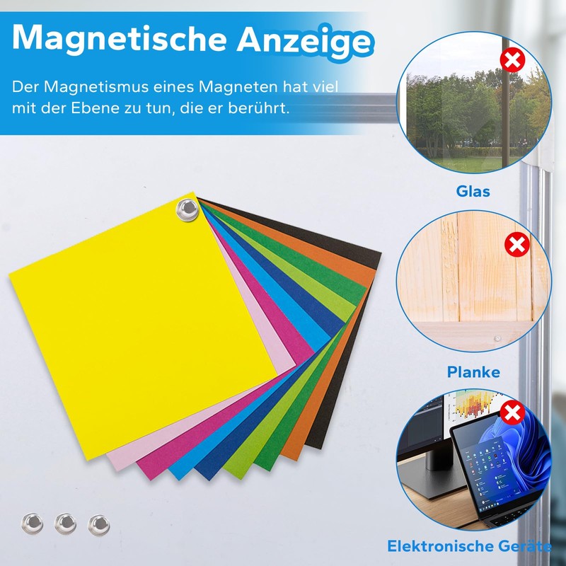- Magnete Stark: Magnete für Whiteboard haben einen starken Magnetismus und können auf magnetischen Oberflächen adsorbiert werden. Damit lassen sich magnetische Metallnägel ganz einfach an magnetischen Wänden oder Magnettafeln, wie zum Beispiel Whiteboards oder Kühlschranktüren, befestigen,schule.