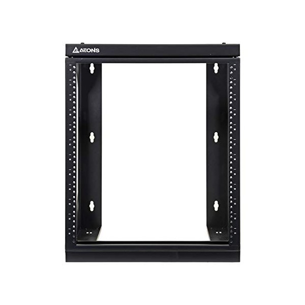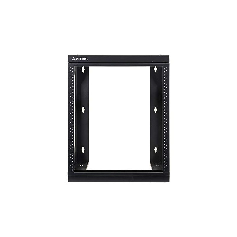 AEONS 12U Wall Mount IT Open Frame 19 Inch Depth-Adjustable Rack with Swing Out Hinged Gate Black