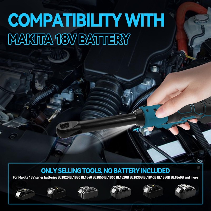 • Applicable Models: This cordless extended ratchet wrench is compatible with Ma-kita 18V series batteries BL1820 BL1830 BL1840 BL1850 BL1860 BL1820B BL1830B BL1840B BL1850B BL1860B, please confirm your model before purchasing