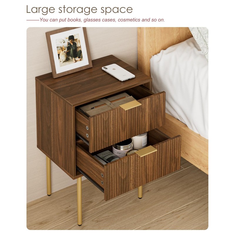 AEPOALUA Nightstand,Morden Bedside Table with Gold Frame,Small White Night Stand,End Table,Bedside Furniture,Side Table with Drawer and Shelf for Bedroom,Living Room (2Drawers, Walnut Brown)