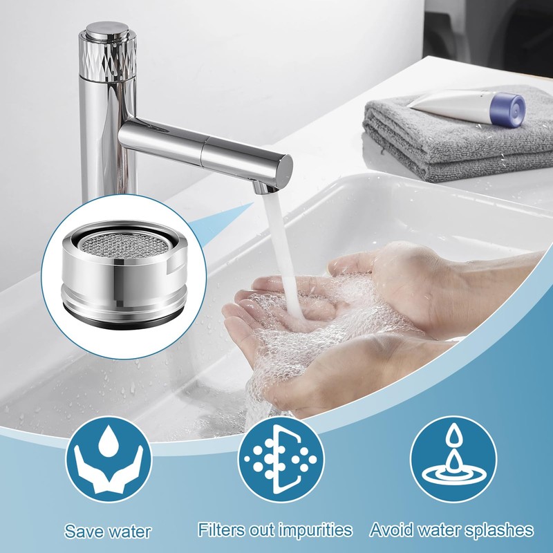 Aerator M24, Tap Attachment, Water Saver for Taps, 7-Layer Filtration, Aerators, Stainless Steel and ABS Strainer, Includes 6 Gaskets and 1 Chrome Plated Key