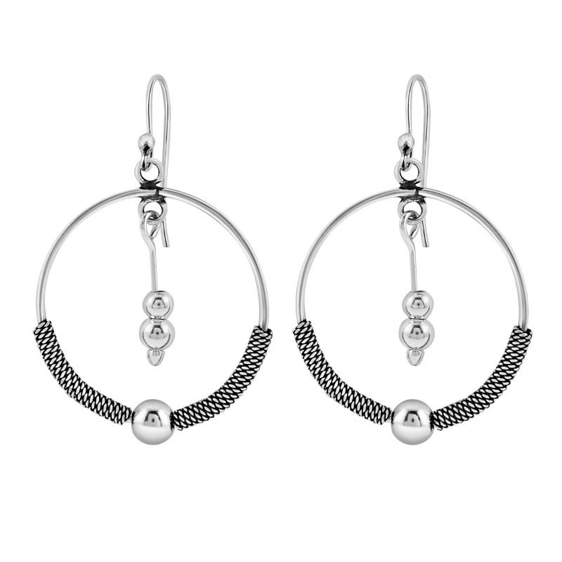 AeraVida Balinese Inspired Tribal Chic Round .925 Sterling Silver Spheres Dangle Earrings