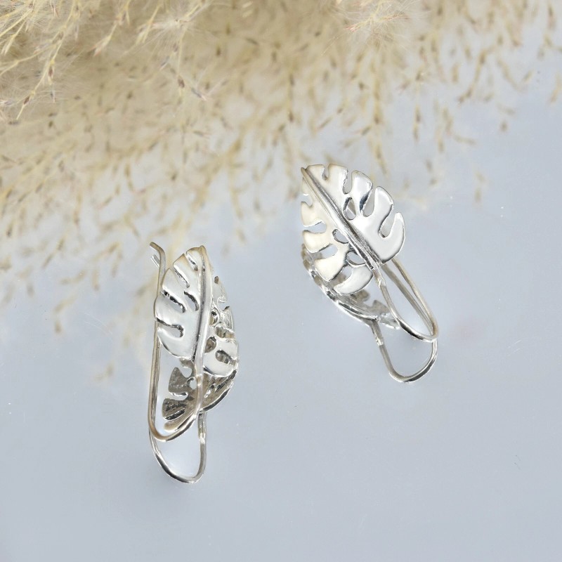 AeraVida Boho Chic Tropical Charm Monstera Leaf Sterling Silver Dangle Earrings