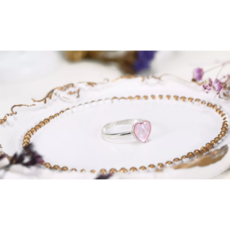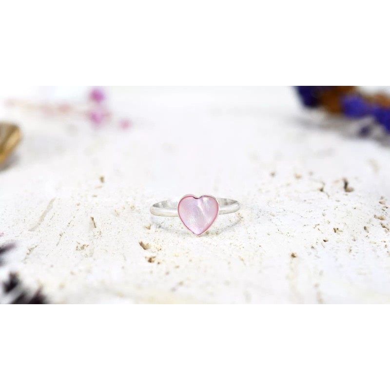 AeraVida Cute & Colorful Heart Shaped Pink Shell Inlay Sterling Silver Toe or Pinky Ring