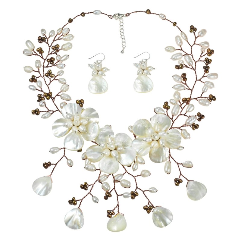AeraVida Enchanted Daisies Mother of Pearl Ray Jewelry Set Necklace Earrings