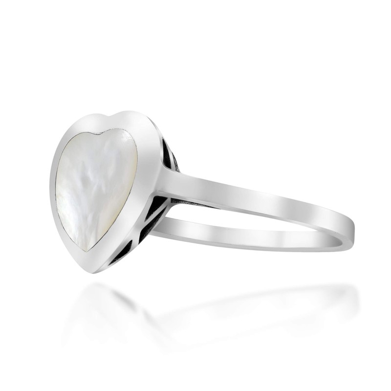 AeraVida Heart of Compassion White Mother of Pearl Inlay .925 Sterling Silver Ring (9)