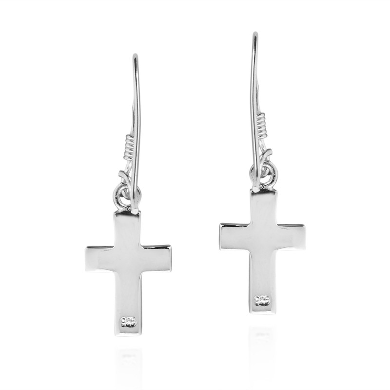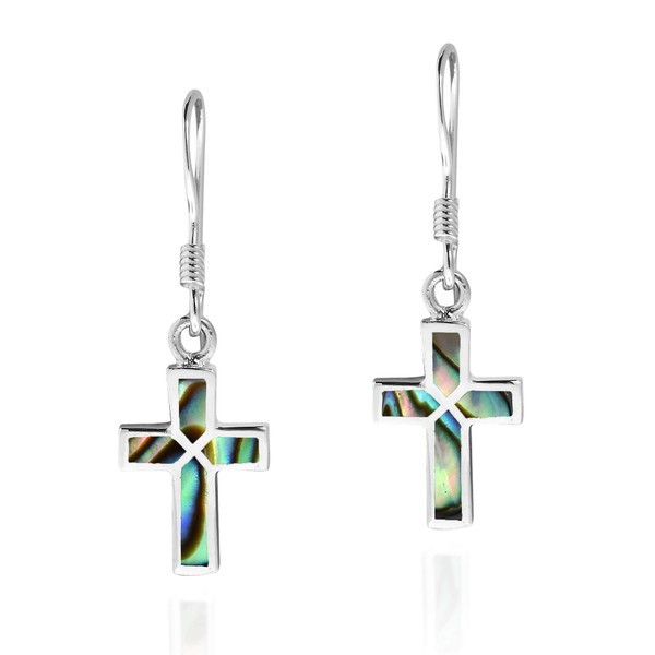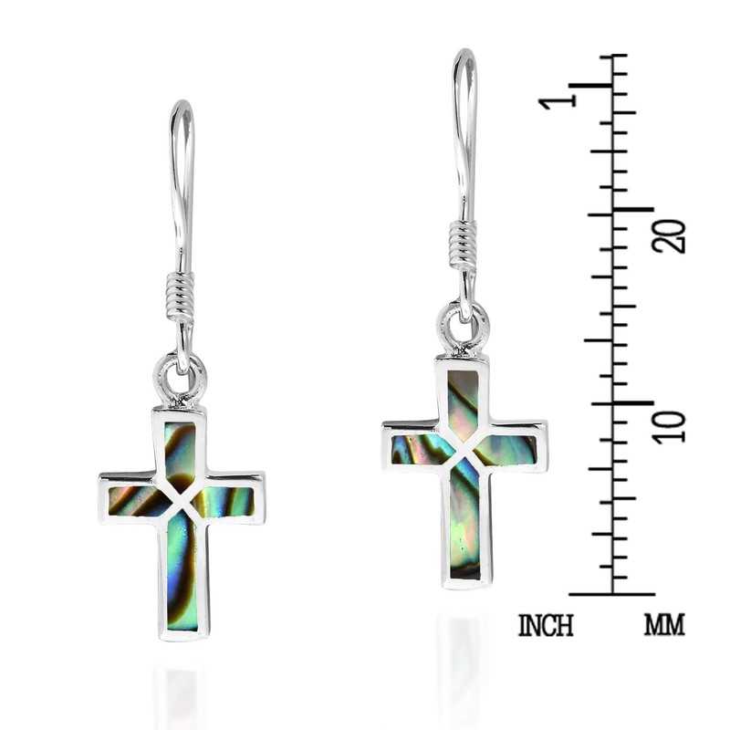 Aeravida Mini Cross Inlaid Abalone Shell .925 Sterling Silver Dangle Earrings