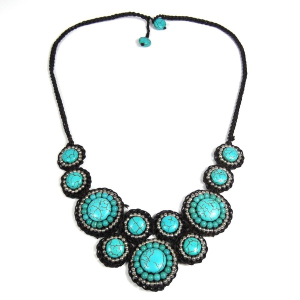 AeraVida Mosaic Circles Simulated Turquoise Stone Unique Collar Necklace