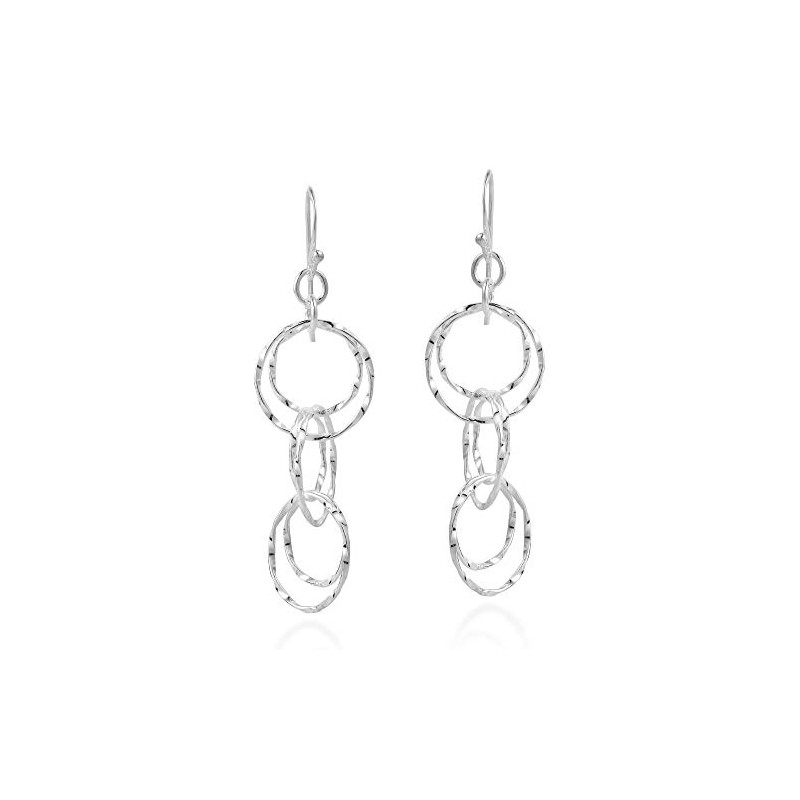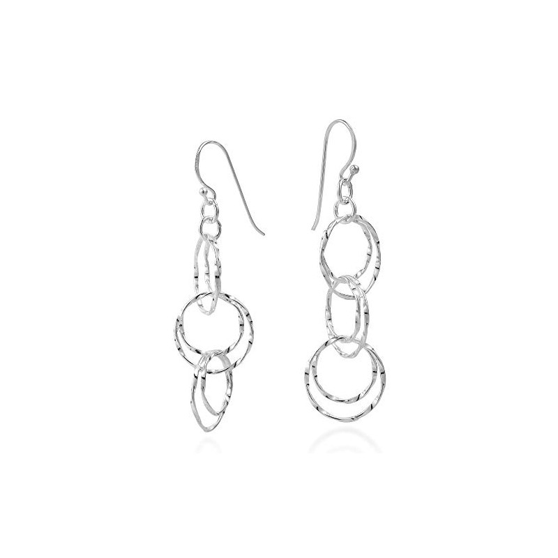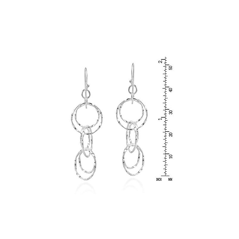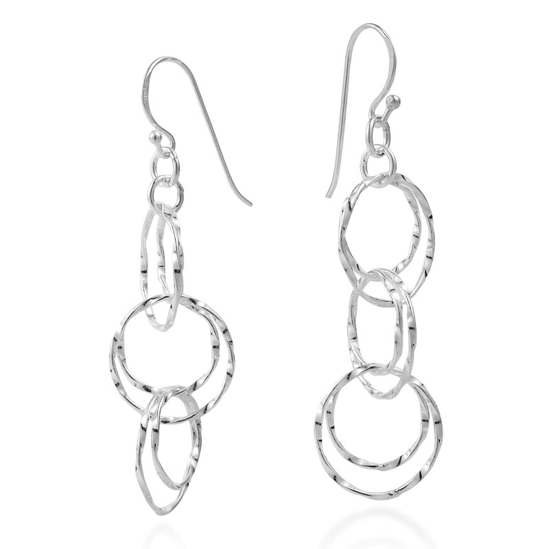 AeraVida Mystical Comet Multiple Twist Circles .925 Sterling Silver Dangle Earrings, Sterling Silver