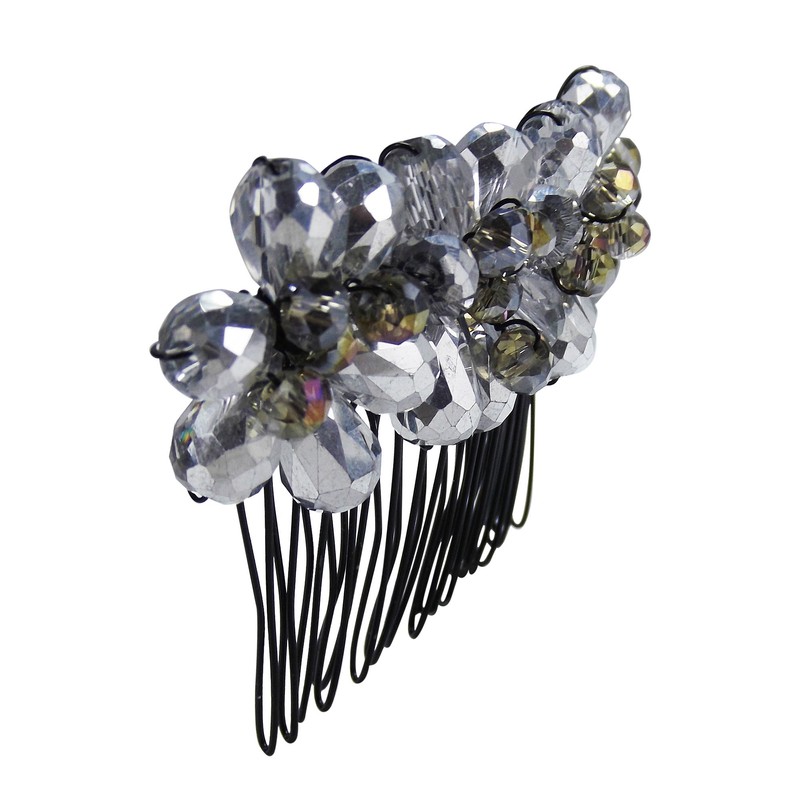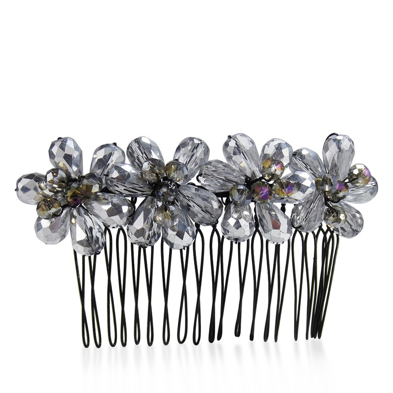AeraVida Smokey Silver Glow Floral Crystal Bouquet Hair Comb