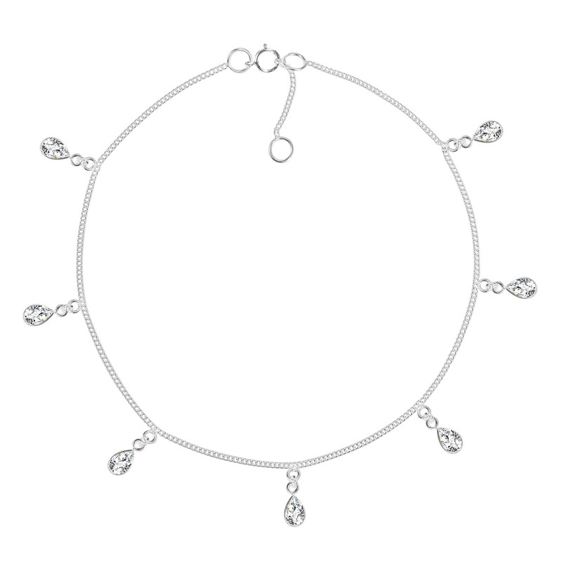 AeraVida White Teardrop CZ Dangle Sterling Silver Anklet with Adjustable Chain | Delicate Sparkling Cubic Zirconia Charms | Lightweight Shiny 925 Silver Daily Foot Jewelry for Women