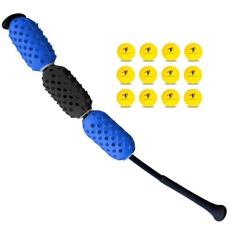 Aero Swing Baseball & Softball Swing Trainer and 12 Durable Foam Balls Bat Swing Air Resistance, Baseball and Softball Training Tool, Batting Aid for Speed and Accuracy.- All Black-Blue Standard