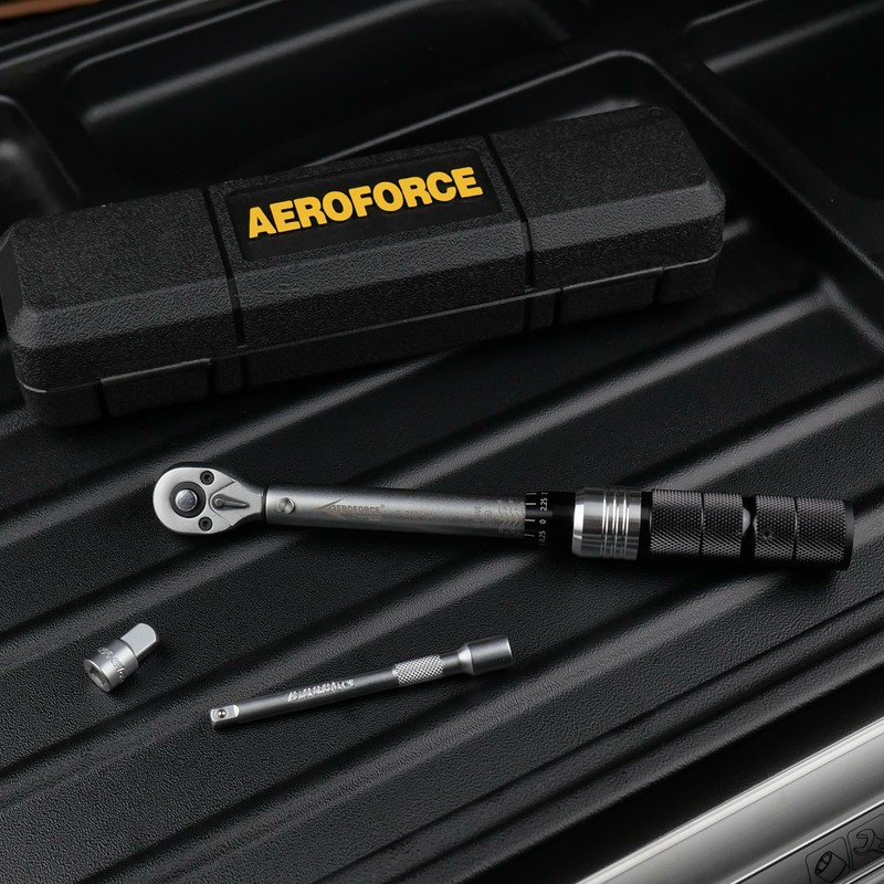Aeroforce Torque Wrench Set 1/4 Inch 3-Piece with 72 Teeth Dual Direction Reversal (5-25 NM), Includes Extension Rod and 1/4 Female to 3/8 Male Adapter