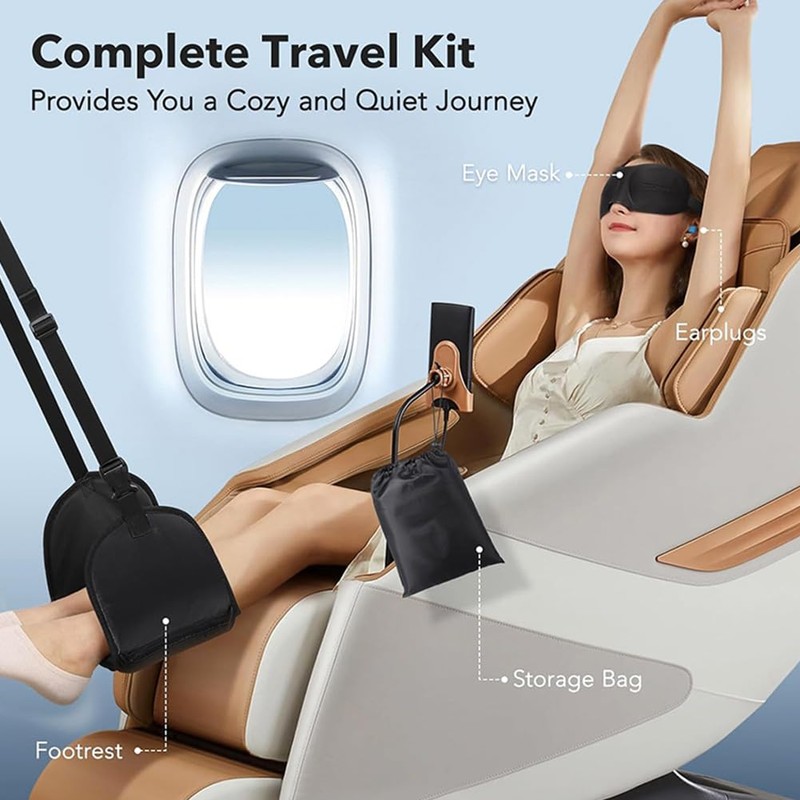 Aeroplane Footrest Foot Hammock, Footrest Made of Premium Memory Foam, Portable Adjustable Aeroplane Leg Rest, Non-Collide Footrest Provides Relaxation and Comfort for Long Flights (Black)