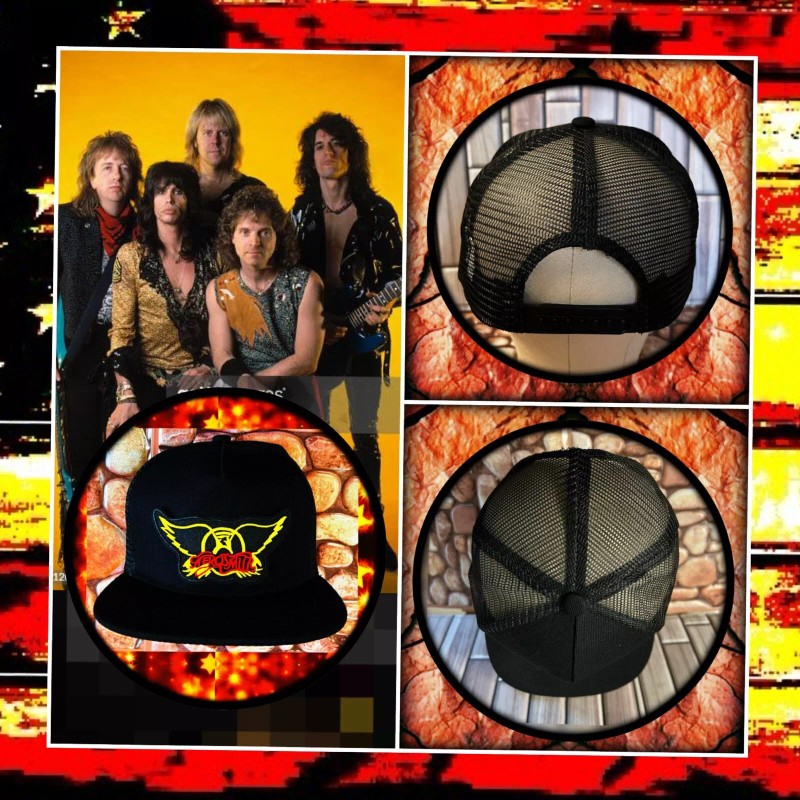 AEROSMITH PATCHED BLACK SNAPBACK TRUCKER HAT