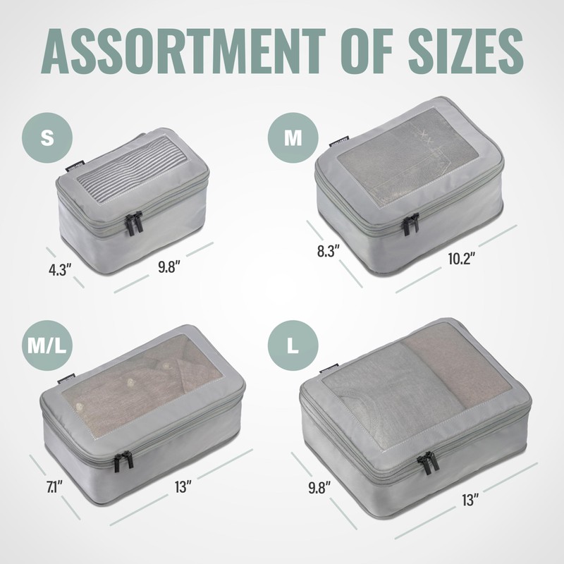 - FIT UP TO 50% MORE - Get up to 50% additional packing space in your suitcase with our double zipper compression design. These packing cubes will help you to take more clothes and personal belonging on your next trip.