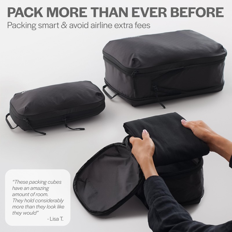 - MAXIMIZE YOUR SPACE — These packing cubes for travel compress clothes to fit way more than you’d expect. Pack for long trips without overstuffing. Save space in your suitcase and avoid extra luggage fees. These travel essentials will keep you neatly organized on any trip.