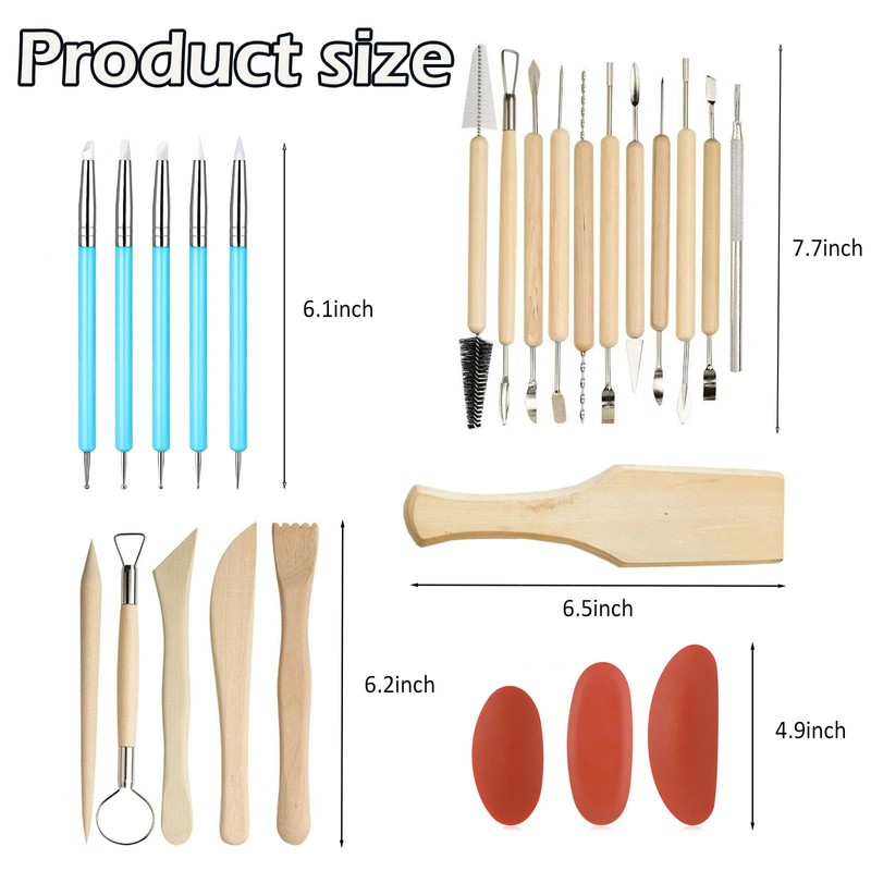 - 【What you'll get】 : A complete set of essential pottery tools for carving, cutting, shaping, trimming, and smoothing clay. Everything you need to start creating – no extra purchases required!