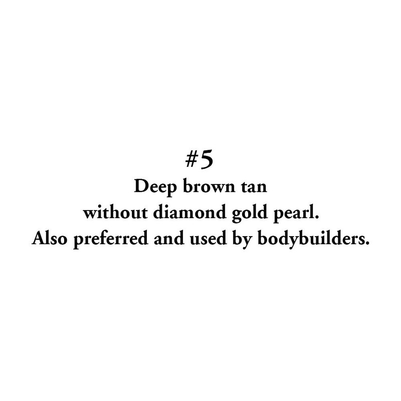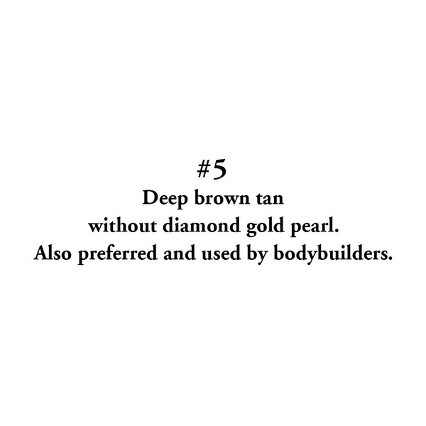 - #5: Brown Stone - Alluring brown as #3 but without the diamond glitter. Also preferred by bodybuilders.