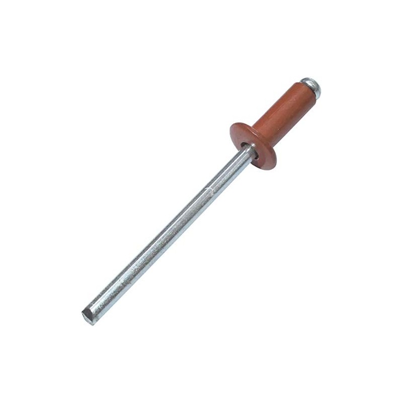 This set of 50 blind rivets made of steel - aluminium is an essential and non-removable fastener. Allows the installation of metal parts. The riveting, i.e. the crushing of rivets, is carried out with a rivet plier, also called a riveting machine. It is a cylindrical rod - insert large nail into a hole previously drilled into the treated workpiece. Dimensions: rivet diameter: 4 mm. Rivet length: 10 mm. DIN 7337. Unit weight: 1.572 g. Colour: copper brown RAL 8004. Material: aluminium head, steel nail (Al - St). Namely: when squeezing rivets, the riveting machine pulls the rod to tighten the rivet ends. The advantage of riveting is the saving in terms of cost and time but also the ease of operation. The effect of the right equipment will be the best answer to the requirements of customers. You have the option to choose your favourite colour to highlight your work by giving a contrast or harmony of colours. The standard rivet consists of a flat head, a body and a cylindrical rod that deforms the end during the handling of the rivet. Please note: you need to check how the riveting machine works from time to time so that you can be sure that the rivets are firmly in place