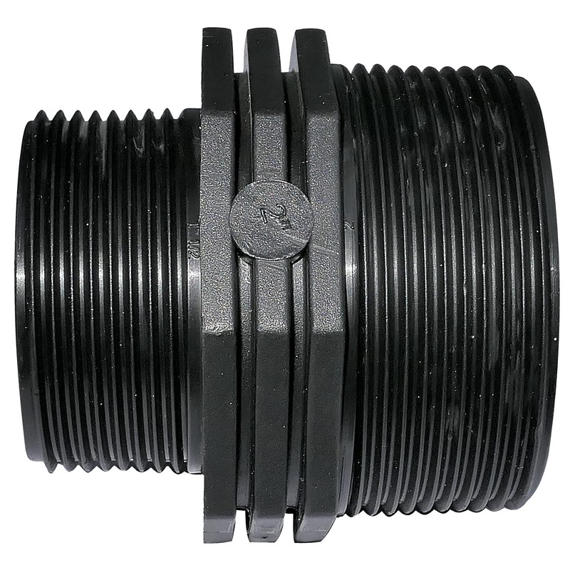 - Dimensions: male thread size: 2" and 1 1/2". Unit weight: 57.80 g. Nominal pressure: PN 6 bar. Material: made of plastic. Durable material. The ergonomic shape in the centre makes it easier to screw in the hose, mounting possible by a few turns keys or by hand. Discover our wide range of fittings with a wide range of sizes. The piece shown here is known for its durability and ease of use