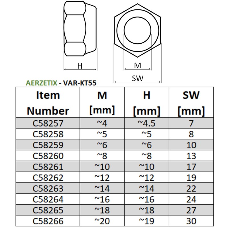 AERZETIX - C58266 - Set of 5 hexagon nuts self-locking M20 - self-locking nuts with nylon ring - metric thread - made of galvanised steel - colour silver