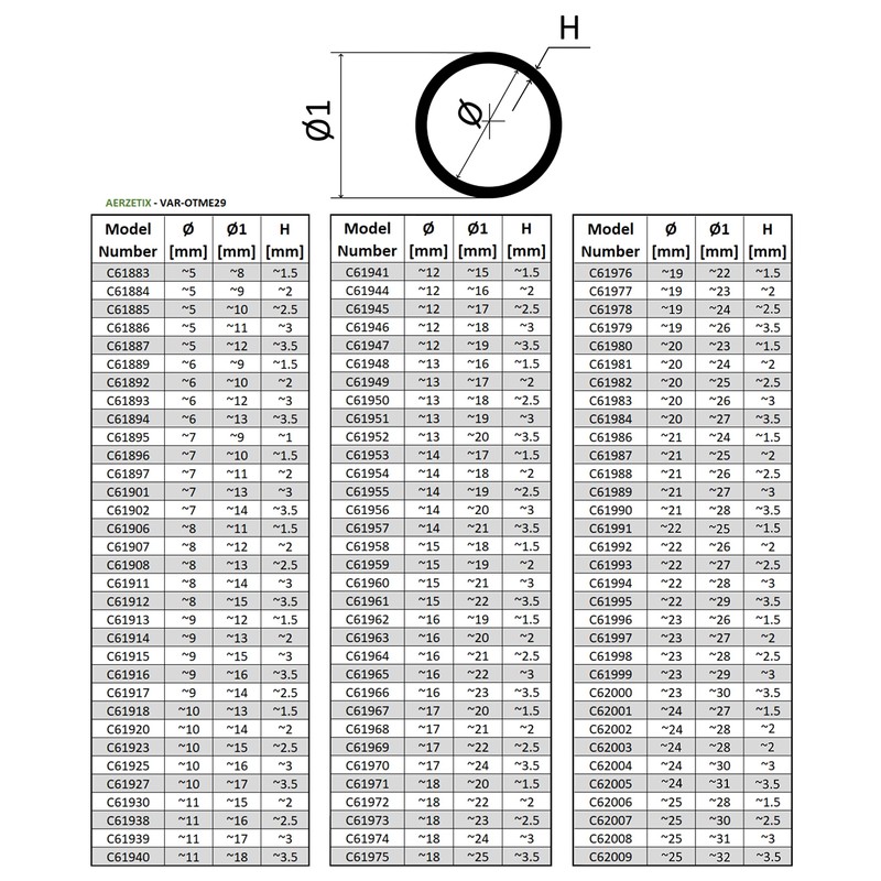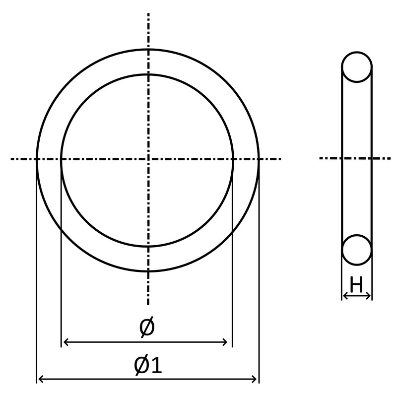 - Dimensions: Thickness H: 2.5 mm. Inner diameter: 11 mm. Outer diameter Ø1: 16 mm. Operating temperature: -30 to 100 °C. Hardness: 70, Weight per piece: 0.28 g. Material: NBR rubber.