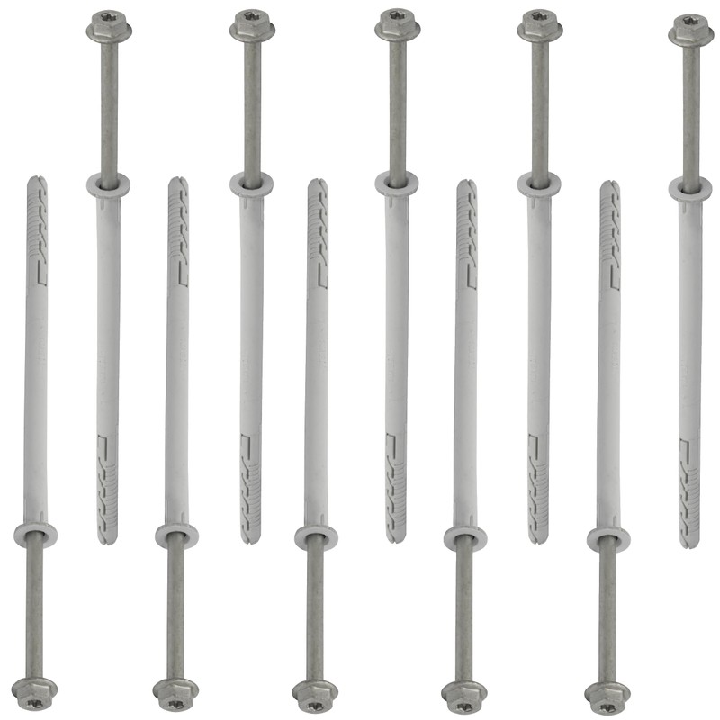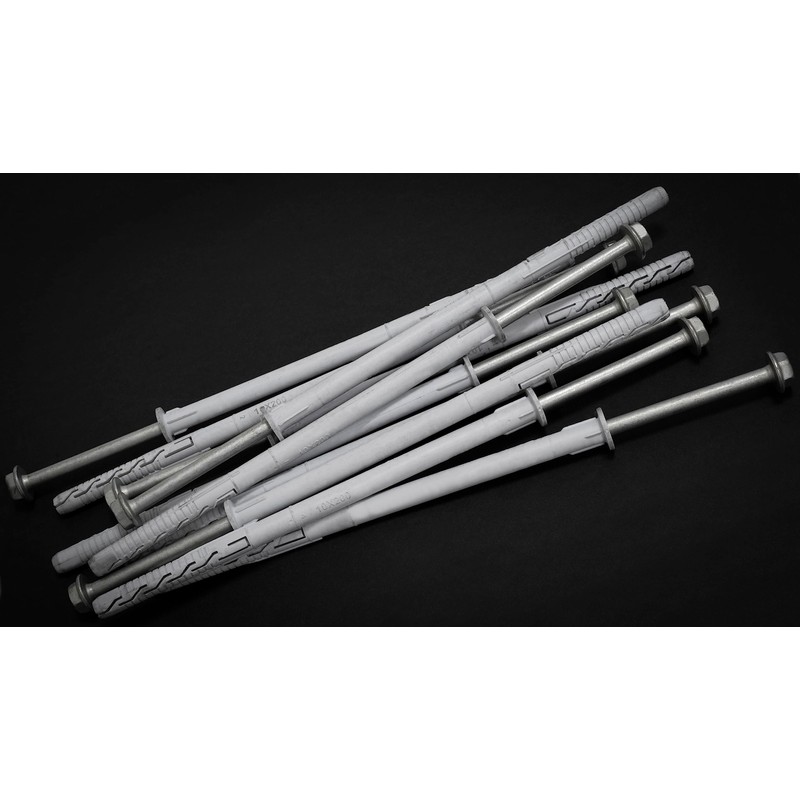 AERZETIX - C67142 - Set of 10 Plastic Dowels Diameter 10 x 200 mm with Collar + 10 Self-Tapping Screws Diameter 7 x 210 mm with Collar and Hexagonal Head Star Shape TX40 - Concrete, Brick, Drilling,