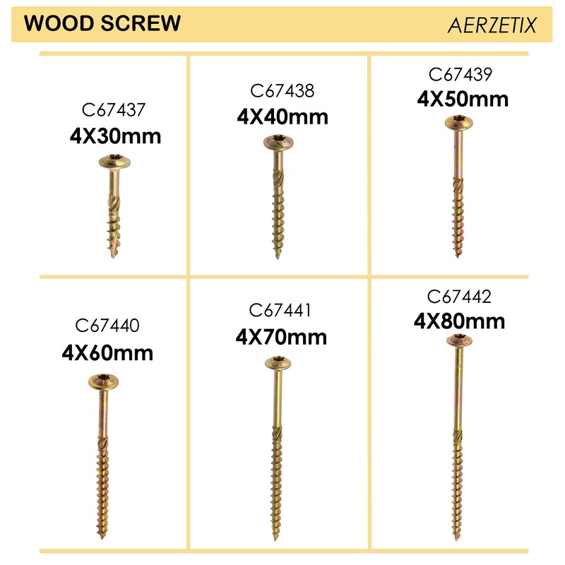 AERZETIX - C67440 - Set of 100 wood screws Ø4x60mm with wide, curved head - with star print Т20 - made of galvanised steel - carpentry, plywood, chipboard, melamine boards