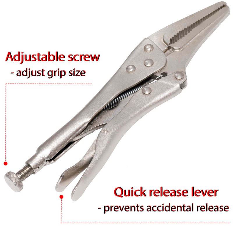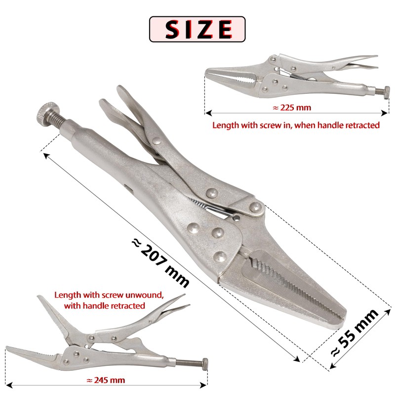 AERZETIX - C68487 - Vise Pliers with Extended Beak Serrated Jaw - Length 225 mm - Self-Locking Adjustable Multifunction Quick Release Pliers - Carbon Steel