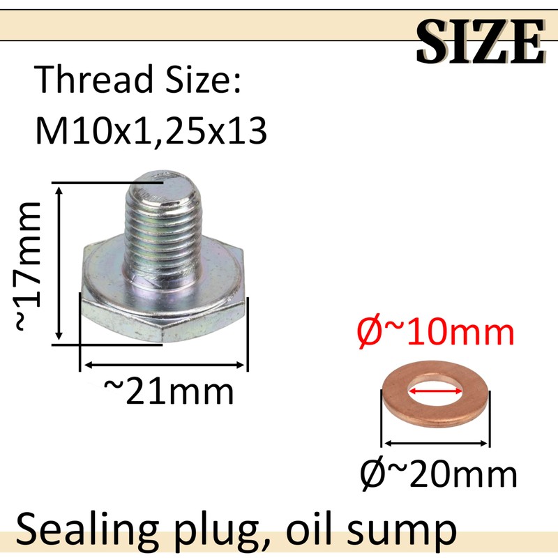 - Locking screw, oil pan M10 x 1.25 with sealing ring.
