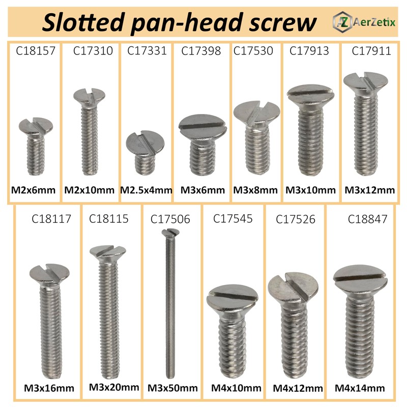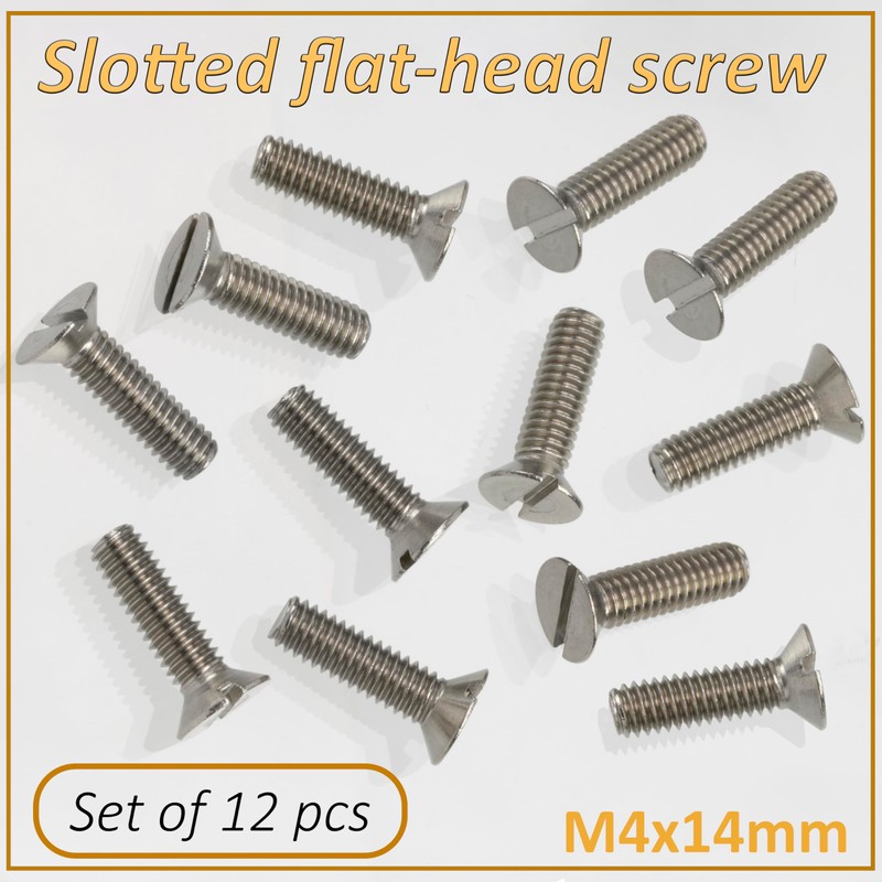 AERZETIX - NV18847 - Set of 12 Countersunk Metal Screws M4x14 mm with SL Interior Metric Thread - Steel - Silver